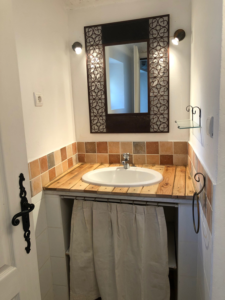 Puis à côté, l'espace douche avec les WC.